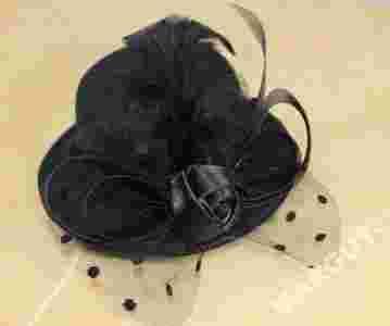 Wielkość kapelusza średnica ronda ok. 13 cm, wysokość ok. 6 cm. Długość spinki ok. 4,5 cm.