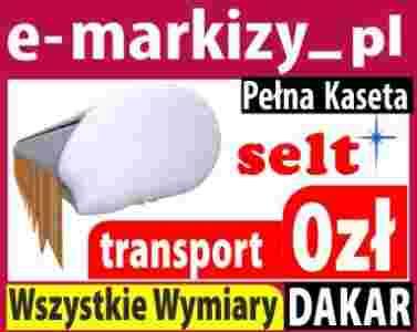 Markiza Dakar produkowana jest na wymiar. Jeżeli chodzi o szerokość to niema standardowych rozmiarów. Maksymalna szerokość to 600cm a wysięg to 360cm