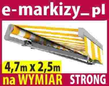 Aukcja dotyczy markizy Stong o wymiarach 470x250cm. Jednak ten model wykonywany jest na wymiar, więc możemy zamówić również inną szerokość i wysięg markizy. Max. szerokość w tym modelu to 700cm a wysięg to 410cm. Aby poznać dokładną cenę markizy, podaj nam informacje, które zawarte są poniżej w aukcji.