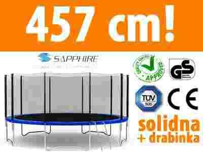 Spraw swoim dzieciom wyjątkowy prezent, dzięki któremu chętniej spędzą czas na dworze! Zamów trampolinę 457 cm Sapphire z ochronną siatką i drabinką już dziś.