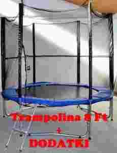 W zestawie drabinka + pokrowiec na trampolinę +klucz do naciągu sprężyn +instrukcja w języku polskim .