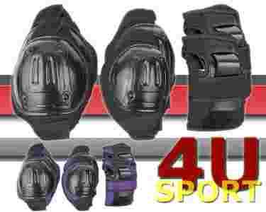 Zestaw ochraniaczy na nadgarstki, łokcie i kolana, wykonany z wysokiej jakości poliestru oraz amortyzującej pianki EVA i tworzywa PVC. Anatomiczny kształt dobrze dopasowuje się do sylwetki zapewniając wysoki poziom bezpieczeństwa.