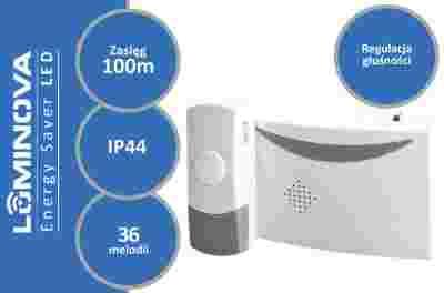 Markowy DZWONEK BEZPRZEWODOWY IP44 100m 36 melodii