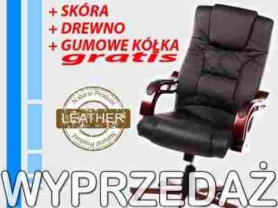 MARKOWY FOTEL BIUROWY SKÓRA DREWNO + GRATIS |448