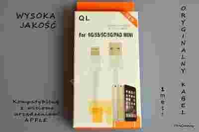 Cechy produktu: Wysokiej jakości kabel USB do urządzeń APPLE Profesjonalne wykończenie. Kompatybilny z iPhone 6 5 5s 5g 5c iPad iPod i systemem iOS 7.