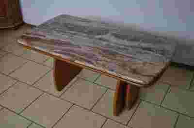 Z ogromną przyjemnością zapraszam do licytacji, której przedmiotem jest urocza ława wykonana z drewna i marmuru. Posiada możliwość regulacji wysokości blatu. Ława ciężka i masywna wsparta na pięknych nogach.