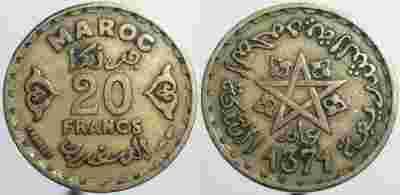 MAROKO - 20 FRANKÓW 1951 r NR 2