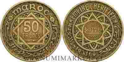 Maroko, 50 franków, AH1371 rok