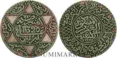 Maroko, 5 dirhamów, AH1320 rok, Ag