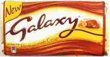 Delikatna i kremowa czekolada mleczna Galaxy z miodowymi chrupiącymi kawałkami .