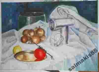 MARTWA NATURA NA BIAŁYM MATERIALE akryl