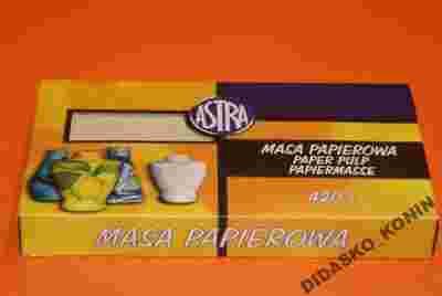 Masa papierowa ASTRY jest materiałem plastycznym o konsystencji gotowego ciasta, dobrze przywierającym do powierzchni innych materiałów. Nakłada się ją na wcześniej przygotowaną konstrukcję warstwami po wyschnięciu pierwszej - kolejne. Po wyschnięciu powierzchnię masy papierowej można obrabiać przez dorzeżbianie, piłowanie, struganie czy szlifowanie np. papierem ściernym. Masa papierowa umożliwia tworzenie dużych, efektownych prac na konstrukcjach z butelek, balonów, talerzy, styropianu, gałęzi, kamieni, tektury itp. Nadaje się ona również do wykonywania małych form rzeżbiarskich, takich jak: korale, medaliony, bransoletki, spinki, reliefy itp. Gotowe wyroby można malować farbami ASTRY.