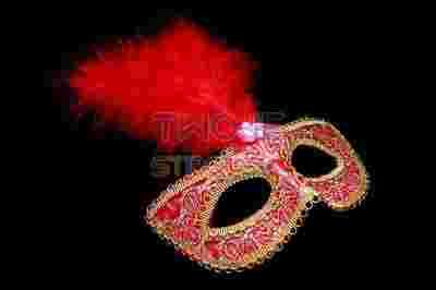 MASKA WENECKA Z PIÓRAMI KORONKOWA CZERWONA 24H