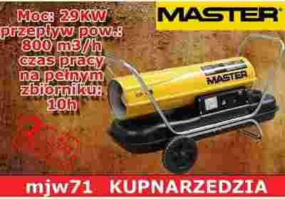 Dane techniczne: - Wydajność: 29 kW - Przepływ powietrza: 800 m³/h - Zużycie paliwa: 2,45 kg/h - Paliwo: olej opałowy/napędowy - Pojemność zbiornika: 42 l - Temperatura wydmuchu: 250°C - Prąd znamionowy: 1,2 A - Zapłon: żarnik - Napięcie: 230/50 V/Hz - Wyłącznik fotokomórkowy: standard - Regulacja termostatem: możliwa - Rozmiary: 1110mmx400mmx450mm (długość x szerokość x wysokość) Charakterystyka: - Nagrzewnice olejowe bez odprowadzenia spalin to wysoce wydajne urządzenia zapewniające stały dopływ dużych ilości ogrzanego powietrza tam, gdzie jest ono pożądane. Doskonale nadają się do otwartych lub dobrze wentylowanych powierzchni, takich jak fabryki, magazyny lub na tereny budów. Nagrzewnice bez odprowadzenia spalin firmy Master są zarówno wydajne, trwałe, jak i bezpieczne i proste w obsłudze. Zastosowanie: - Ogrzewanie hal, magazynów, obiektów inwentarskich, budów w trakcie realizacji, myjni, stacji diagnostycznych i wulkanizatorskich, namiotów i warsztatów itp. Gwarancja: - 1 rok (zakup - Paragon, Faktura VAT