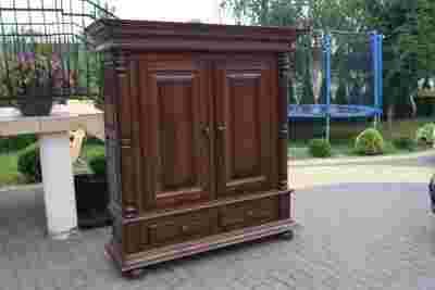 MASYWNA CIĘŻKA SZAFA DĘBOWA Z PÓŁKAMI