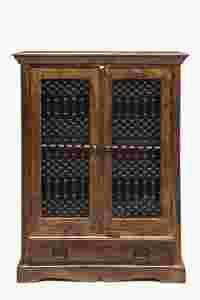 Masywny i solidny mebel. Wyposażony w dwa ażurowe fronty oraz szuflady.