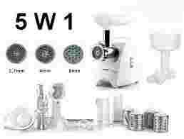 Sitka do mielenia Trzy sitka o różnych średnicach pozwolą na mielenie maku (2,7 mm), sera białego lub mięsa (4 mm) a posiadające największe otwory (8 mm) pozwoli zmielić mięso na kiełbasę.