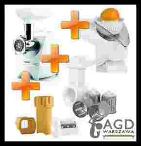 Maszynka to dobrze wyposażone urządzenie o wielkich możliwościach. Sitka o różnej średnicy otworów, szatkownica z możliwością tarcia na wiórki, plastry oraz przecierania, a także nasadka do napełniania kiełbas i formowania kotletów, to nie wszystkie opcje jakie daje nam ta maszynka. W zestawie otrzymujemy także cytrusiarkę do wyciskania świeżych soków z owoców cytrusowych. Jeżeli dostępne akcesoria okażą się niewystarczające, możemy dokupić wyciskarkę i młynek żarnowy.