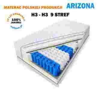 Materac Arizona zbudowany jest z wysokiej jakości komponentów. Środkiem materaca są sprężyny kieszeniowe 9 stref obłożone od góry i od dołu pianką elastyczną. Górna i dolna strona materaca zaliczana jest do kategorii H3 średnio twardej.