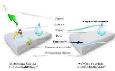 Pokrowce na materace z dzianiny TeoMed, która posiada szwajcarski certyfikat SANITIZED®, dzięki zastosowaniu higienicznej apretury z jonów srebra, zapewniają skuteczną