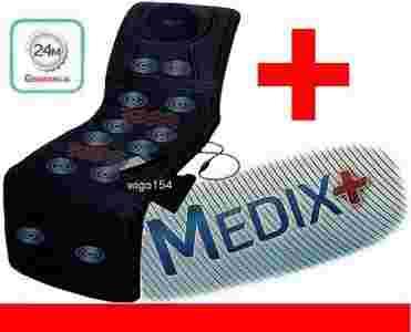 Materac Aparat do masażu Medix+ z funkcją podgrzewania w dwóch strefach. Rozmieszczenie silniczków jest odpowiednio dostosowane do masażu mięśni karku ,kręgosłupa pleców, okolicy bioder ,pośladków oraz ud i łydek ,Materac obsługiwany jest za pomocą wygodnego ręcznego pilota ,którym można wybrać odpowiedni program jeden z pięciu możliwych do wyboru ,oraz dostosować intensywności wykonywanego masażu w skali trzy stopniowej. Dodatkowo pilot posiada przycisk włączania i wyłączania funkcji podgrzewania materaca .