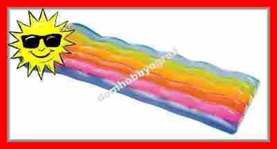 Klasyczny artykuł plażowy w nowej wersji. Przedstawiany dmuchany materac plażowy ma wymiary 191 x 81 cm, dzięki czemu umożliwi Ci wygodny wypoczynek. Dwie komory powietrzne oraz zagłówek tworzą razem konstrukcję, dzięki której możesz w komfortowych warunkach opalać się nad morzem, w basenie bądź na lądzie. PCV o grubości 0,25 mm utrzymane jest w pięknej, tęczowej kolorystyce.
