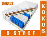 Materac Markus z serii Standard o uniwersalnym wyposażeniu, zbudowany jest z wysokiej jakości komponentów. „Kręgosłupem” całego materaca jest wkład sprężyn kieszonkowych - 9 stref obłożony obustronnie pianką wysoko elastyczną. Pierwsza strona materaca dodatkowo wyposażona została w matę kokosową. Ta strona materaca zaliczana jest do kategorii twardej H4 w skali twardości przedstawionej graficznie w galerii zdjęć. Druga strona materaca zalicza się do kategorii średnio - twardej H3 .Dzięki powyższej konfiguracji, materac posiada dwie strony o bardzo zróżnicowanym stopniu twardości, który z pewnością zadowoli użytkownika ceniącego zdrowy, komfortowy wypoczynek.