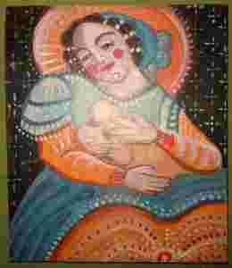 Matka Boska Karmiąca mała ikona ludowa