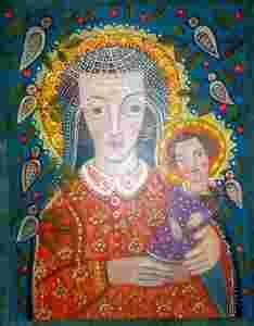 MATKA BOZA Z DZIECIATKIEM IKONA LUDOWA