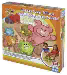 Pomóż głodnym świnkom przedostać się do ogrodu. Ale uważaj: w zaroślach czai się wilk, który strzela wielkimi belami siana. Kto pierwszy przeprowadzi swoje 3 świnki na drugą stronę, wygrywa! Świnka trafiona przez wilka musi wrócić na START. Musisz tak zaplanować ruchy swoich 3 pionków-świnek, aby jak najszybciej przedostać się na drugą stronę planszy. W zestawie: plansza, 12 świnek w 4 kolorach, traktor-wyrzutnia z wilkiem, 3 bele siana, kostka.