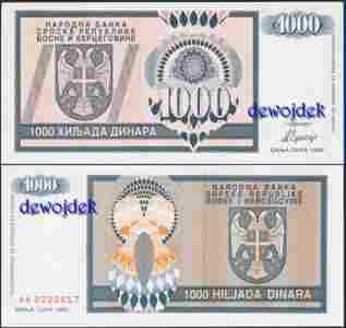MAX - BOŚNIA & HERC 1000 Dinarów 1992 r. # UNC