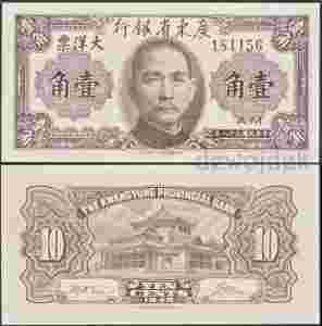 MAX - CHINY KWANGTUNG 10 Centów 1949 r. # UNC