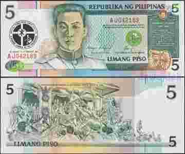 MAX - FILIPINY 5 Piso 1991 r. # PILIPINAS # UNC