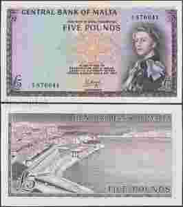 MAX - MALTA 5 Funtów 1967 r. # Nr 30 # UNC-
