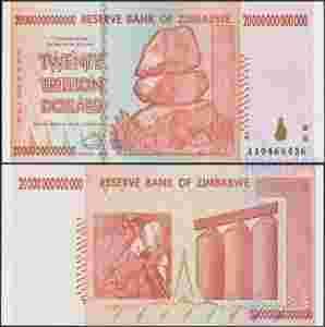 MAX - ZIMBABWE 20 [zasłonięte] 000 000 000 Dollars 2008 UNC