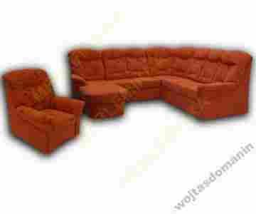 Wygodny komplet wypoczynkowy składający się z narożnika oraz fotela.