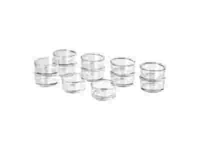 Świecznik szklany, wysokość 2 cm. Można go ozdobić za pomocą farbek do szkła, decoupage. Aukcja dotyczy 1 szt, nie kompletu pokazanego na zdjęciu.