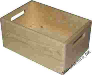Wykonane z drewna sosnowego, o wymiarze zewnętrznym 20x30x14cm.Skrzynka do przechowywania drobniejszych rzeczy, zabawek itp. Posiadają nóżki umożliwiające swobodne i bezpieczne ustawianie skrzyń jedna na drugiej - tz sztaplowanie.