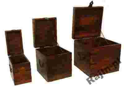 Szanowny Kliencie w naszej ofercie mamy 3 kuferki, skrzynie z palisandru indyjskiego w kolorze ciemnego brązu doskonałe do przechowywania różnych domowych szpargałów, biżuterii, zdjęć itp. wymiary największego kufra to: