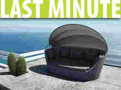 Dzięki rozkładanemu baldachimowi PORTOFINO idealnie chroni przed słońcem i wiatrem – wystarczy sięgnąć ręką, by otulić się upragnionym cieniem lub osłonić od wiatru.