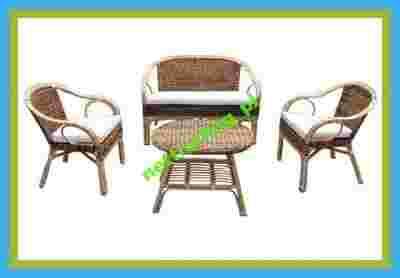 - w skład zestawu wchodzą dwa fotele z poduszkami, sofa z poduszkami oraz stół,