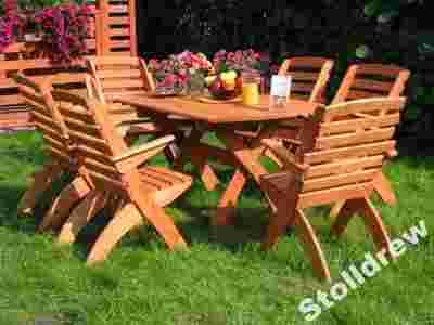 Mam do zaoferowania wspaniałe składane meble ogrodowe dla Twojego ogrodu lub tarasu. Zaokrąglenie każdego z elementów oraz dokładne szlifowanie jest gwarancją estetyki. Do produkcji wykorzystujemy drewno sosnowe o grubości elementów 22mm . Blat stołu szlifowany w wzdłuż słoja, przez co nie ma widocznych rys szlifowania. Całość zabezpieczona impregnatem drewnochron w kolorze tikowym, ciemny orzech, dąb, zielony, bezbarwnym. Możliwość wywiercenie otworu na środku blatu w celu umieszczenia rurki parasolu. Siedzisko i oparcie delikatnie odchylone do tyłu, efektem czego siedzisko jest o 5cm wyższe od siedziska krzesła typu "S". Stół również jest odpowiednio wyższy.