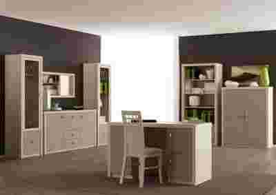 Zestaw mebli PERŁA - dwie witryny, dwie komody, regał, lustro, biurko.