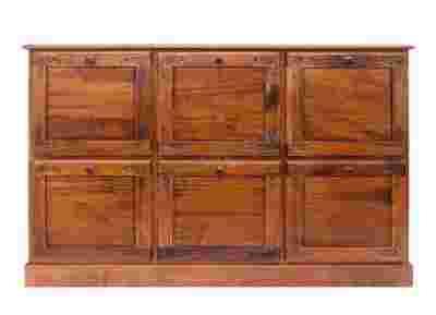 Mebel wykonany z litego drewna egzotycznego w kolorze dębowym.