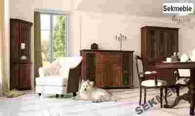 Bolero to propozycja dla osób ceniących styl klasyczny. Ozdobne listwy, metalowe uchwyty w kolorze starego złota oraz złote wykończenie szklanych elementów nadają meblom bardzo eleganckiego charakteru.