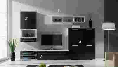 Meble są nowe zapakowane w paczkach do samodzielnego montażu wraz z instrukcją oraz okuciami. Kolor: biały/czarny połysk.