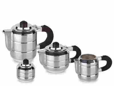 W zestawie dzbanek do kawy, dzbanek do herbaty, mlecznik i cukiernica.