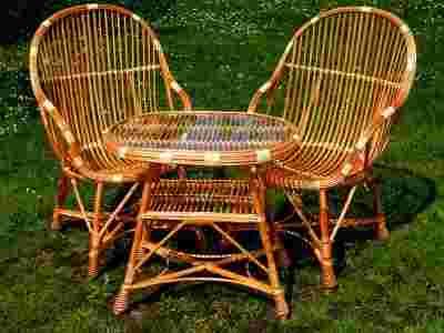 Komplet mebli z polskiej wikliny: 2 krzesła z oparciem + stolik owalny - przy produkcji krzeseł i stolika zastosowane zostały najwyższej jakości grube, mocne kije co zapewnia solidną i trwałą konstrukcję. Komplet jest bardzo wytrzymały i solidny.