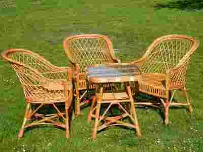Komplet mebli z polskiej wikliny: 3 krzesła + stolik kwadrat - przy produkcji krzeseł i stolika zastosowane zostały najwyższej jakości grube, mocne kije co zapewnia solidną i trwałą konstrukcję. Komplet jest bardzo wytrzymały i solidny.