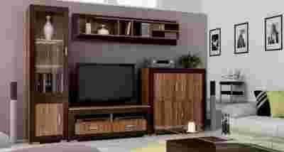 Całość składa się z pojemnej komody, szafki RTV, półki wiszącej oraz oszklonej witryny.